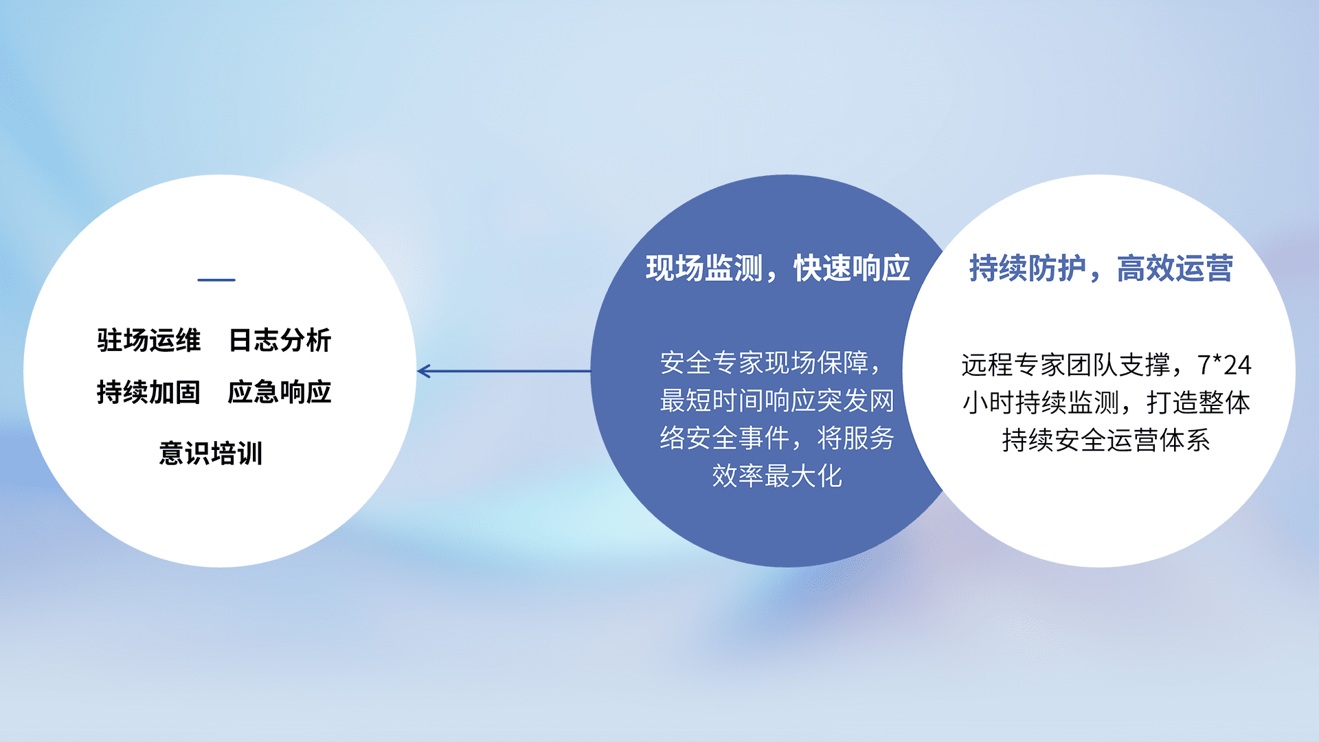 7X24小时持续监测安全事件,保持安全策略有效性,降低资产脆弱性风险,,,精准拦截黑客攻击,,,,减少被黑客利用的机会,,第一时间遏制,,,,降低损失。。